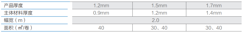 按卷材全厚度分为1.2mm、1.5mm、1.7mm。
